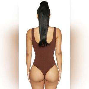 New Without Tags Naked Wardrobe Scoop Neckline Tank Bodysuit Women's Size 2X. A foundational layering piece molds to you like a second skin, featuring a flattering scoop neckline, tank shoulder syraps, thong back with snap closure. color chocolate.