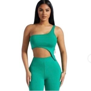 Naked Wardrobe - NWT Green Smooth Side Asymmetrical Crop Top Sz M