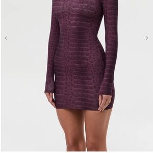 Naked Wardrobe - Naked print long sleeve mini dress- dark plum crocodile NWT