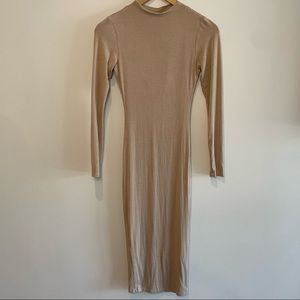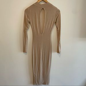 Naked Wardrobe Nude Long Sleeve Back Cutout MIDI Dress size Small