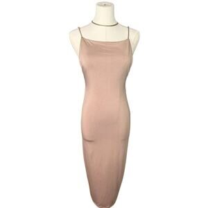 Naked Wardrobe Nude Slip Modal Midi Dress Backless Adjustable Straps | M