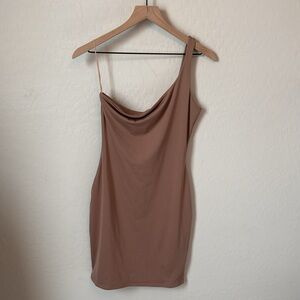 Naked Wardrobe One Shoulder Ribbed Midi Dress in Coco Size L