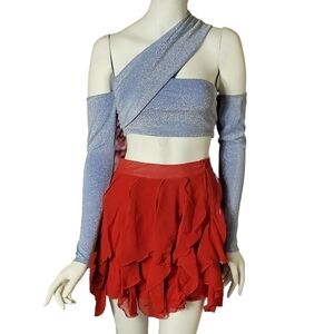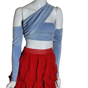 Wrap yourself in this sparkling asymmetric top designed to show some skin.