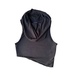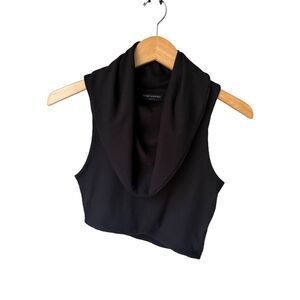 Naked Wardrobe Ribbed Sleeveless Cowl neck Asymmetrical Crop Top In Black. It’s a very fitted size L. It would best fit a M/L (see pictures for measurements). It does have a lot of stretch. New without the tags. No flaws. No longer available online.