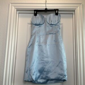 Naked‎ Wardrobe Satin ice blue strapless mini dress size Small
