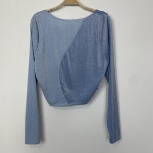 Naked Wardrobe Shimmer Crop Top Size 3X Blue Metallic Shiny Going Out Party