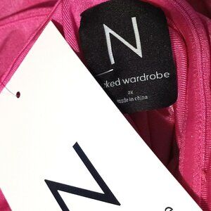 Naked Wardrobe Strapless Side Cutout Midi Dress Bright Pink Womens Size 2X