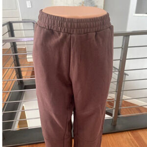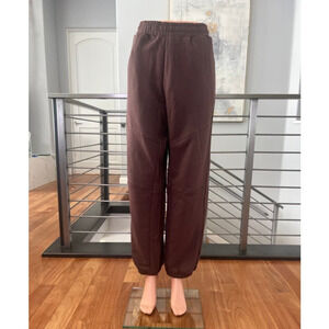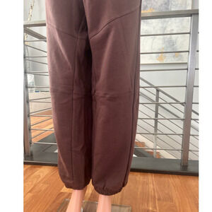 These NWOT Naked Wardrobe Sweatpants in Chocolate feature an elastic waistband with a hidden drawstring, seamed detailing around thighs and knees, and a relaxed fit.