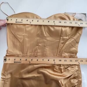 Naked Wardrobe The Statement Gold Bustier Strapless Fitted Dress NEW Women Sz S