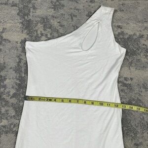 Naked Wardrobe White Bodycon One Shoulder Dress Slit Neck Sz L