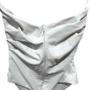 Elegant strapless bodysuit. Smooth and fitted design. Perfect for layering or wearing alone.
