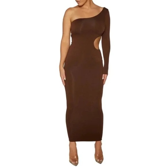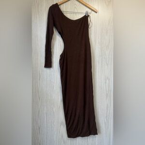 Naked Wardrobe Womens Size L Off The Shoulder Chocolate Brown Dress EUC