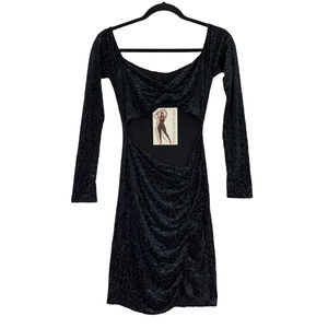 style: NW-00886, color: leopard black, bold front cutout, mini dress, ruching on the front