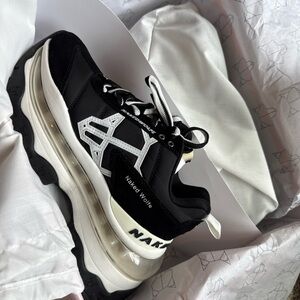 Bold Naked Wolfe sneakers with a chunky sole. Monochrome design with striking logo accents.