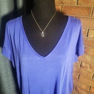 Naked Zebra Blue/Periwinkle V-Neck Short Sleeved Blouse w/Back Cutouts - Size M