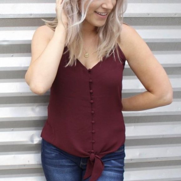 The name says it all!!! The Vital Buttondown Tie Front Tank Top is just that. Vital to your wardrobe and a staple to any closet. Perfect on it's own or pair with a blazer or jean jacket.