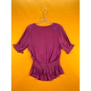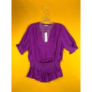 Naked Zebra Cora Peplum Blouse Womens S Mulberry Purple Smocked Short Sleeve NWT