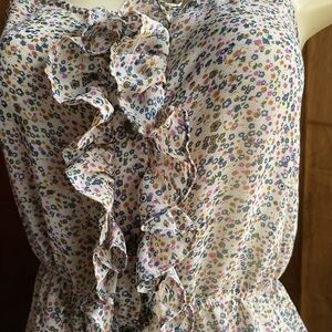 This elegant cream camisole from Naked Zebra features a sleeveless design with charming ruffled details and a stylish tie front. The top's flowy silhouette and delicate fabric make it a versatile addition to any wardrobe, perfect for both casual and dressy occasions.