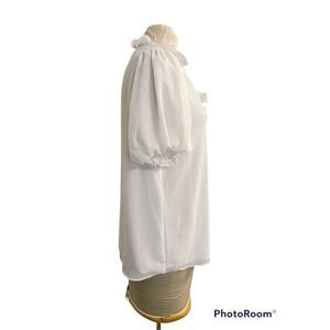 Naked Zebra Flowy Ruffle Neck Blouse White Sz. L Puff Sleeves Spring Easter