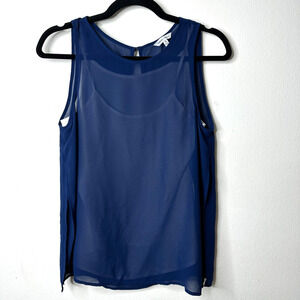 Naked Zebra Flowy Sheer Blue Sleeveless Overtop With White Cami Underneath S