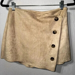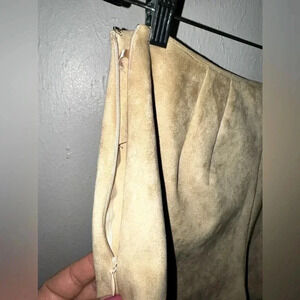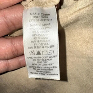 Polyester/spandex blend. Buttery soft material. Tan color with zipper on the side for closure.