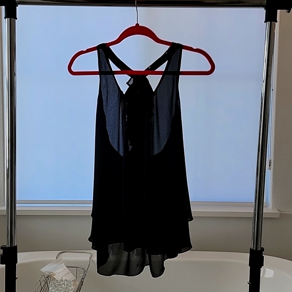 A black fun and flirty Naked Zebra Layered Racerback tank with cute ruffles.