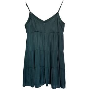 Featuring a rich deep emerald green, this dress has adjustable spaghetti straps, a flattering V-neckline, and a flowy tiered silhouette that moves beautifully.