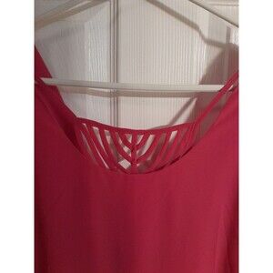 Excellent, used condition, Small Sheer pink camisole with soft cowl neck and cut out back. Waffle weave pattern cut-out back. Side zipper for easy on.
