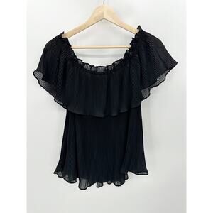 Naked Zebra Womens Off Shoulder Sheer Top Size M Black Vaca Minimal Date Night