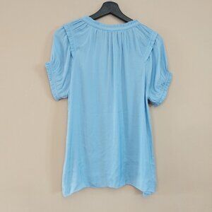 Naked Zebra baby blue blouse with front tie detail and ruffle on the neckline size medium new without tags
