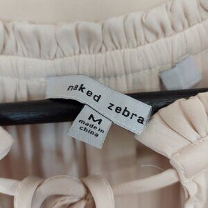 Naked Zebra blouse with tie front closure and ruffle detail on the neck sleeve size medium new without tags