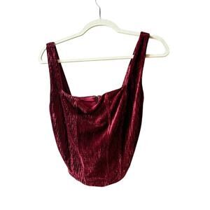 Naked wardrobe plush velvet boned crop top wine size extra large