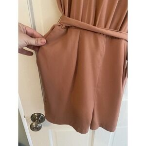 This Naked Zebra romper, in size small, is a stylish addition to any wardrobe. The short sleeve, one-piece outfit comes in a beautiful pink color and is made of 100% polyester satin fabric. It features a cute bow accent, making it perfect for occasions such as weddings, parties, and casual wear.