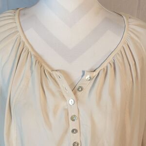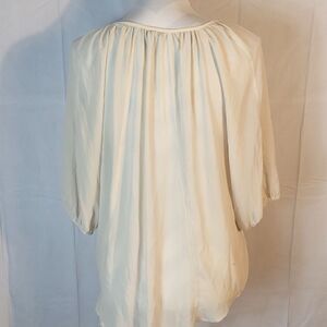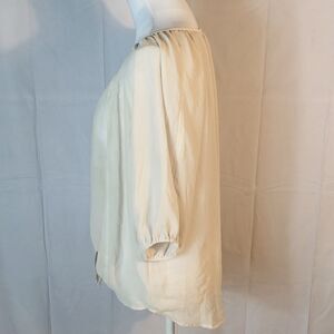 This beige 3/4 sleeve Naked Zebra sheer peasant blouse is a size Small with a pit to pit measuring 22". In excellent condition. All offers are welcome.