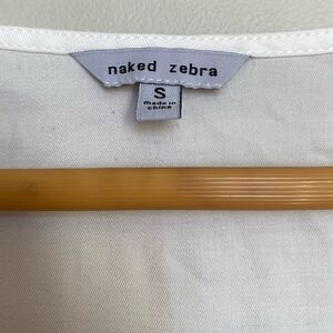 Naked Zebra Wrap Short Sleeved Blouse Small. Tie closure inside first wrap and second closes with tortoise shell clip. Flutter sleeve. Flowy and elegant! pit to pit is approx 18.5”