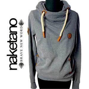 Naketano “Brave New World” Sweatshirt Hoodie, Cotton Blend, Leather Accents, Nature, Outdoors, Hiking, Camp S