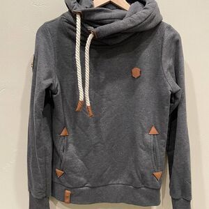 Naketano A Brave New World Women's Dark Gray Cowl Neck Pullover Hooded Sweatshirt