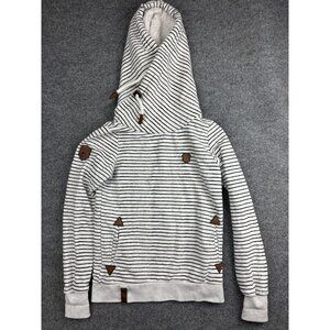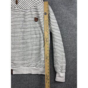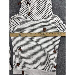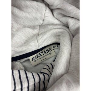 Naketano Hoodie Womens Medium White Navy Striped Cowl Neck Faux Leather Trim
