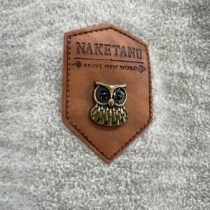 The exterior is a luxuriously soft and fluffy fleece material with an double corded tall collar blending into a cozy hood. The fun faux leather badges and trim details you’ve come to expect from Naketano are found throughout the piece as well, including the owl on the shoulder with both gem eyes still intact. So wicked cool.