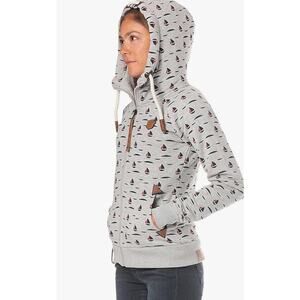 Naketano Poets Choice Full Zip Hoodie pink sailboats pockets heavyweight Medium