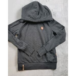 Naketano Womens Gray Hoodie Sweatshirt Pullover Size Medium high cowl neck logo