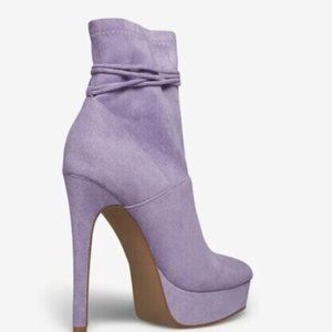Nakisha by SHOEDAZZLE, Wisteria faux suede 5.25" heel platform ankle boots, SZ 9