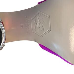 Nalebe Aurum Crystal Embellished Satin Mule Magenta Square Toe Heels EU38/US 8