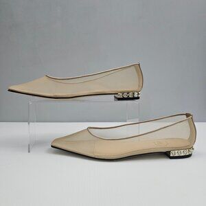 Nalebe Aurum Crystal Flat Womens EU 40 Champagne Mesh Square Toe Italian Luxury