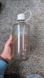 Clear Nalgene water bottle with cream cap. Durable and versatile for everyday use.