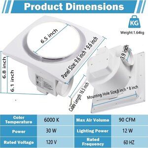 【Ceiling opening size】 Please note the ceiling opening requirement is 8 x 8 inch, resizing your ceiling opening will be needed if existing fan size is different.