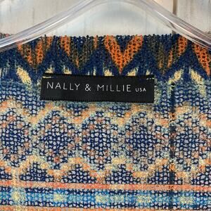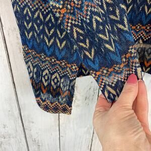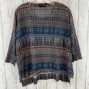 Nally & Millie Blue/Orange Geometric Print 3/4 Sleeve Light Knit Top One Size