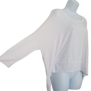 Nally & Millie White Size Small Long Drop Sleeve Asymmetric Hem Tunic BlouseTop.