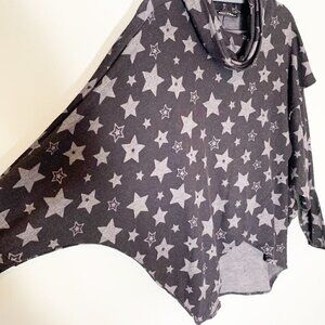 Nally & Millie cowl neck drop shoulder super soft high low star print sweater