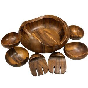 Nambe Pebble Acacia Wood 7-Piece Salad Set – Serving Bowl, 4 Bowls & 2 Servers